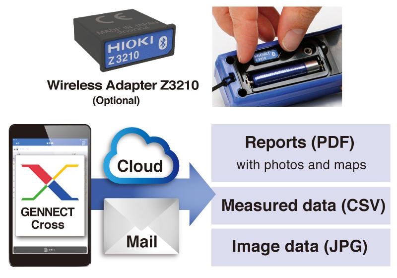 Excel® Direct Input function allows you to input measurement values directly and automatically into an Excel® file once the instrument’s auto-hold function is activated. (Wireless Adapter Z3210 is necessary)